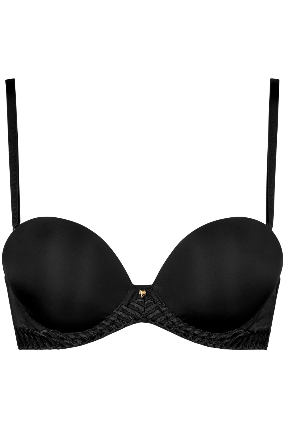 • Plunge underwired bandeau bra in black.